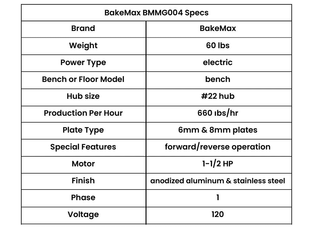 BakeMax BMMG004 Titan Series Meat Grinder is a reliable and high-performance electric countertop grinder designed for commercial use. With its robust stainless steel and aluminum construction, this grinder is built to withstand heavy-duty operations and ensures long-lasting durability.