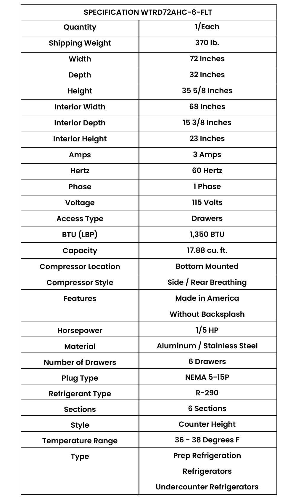 - With a cooling capacity of 2629 BTU/Hr and a heat rejection rate of 3943.5 BTU/Hr, the unit is designed to maintain optimal temperatures for food safety and quality.