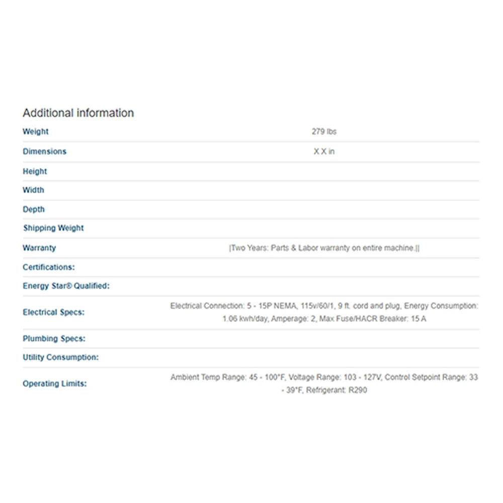- A user-friendly, self-closing solid door with a right hinge provides easy access to stored items and minimizes cold air loss during retrieval.
