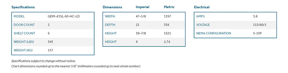The True GDM-41SL-60-HC-LD 47 1/8" GDM Merchandiser is designed for efficient and stylish product display in narrow spaces. This merchandiser features a slim profile with a narrow depth, making it ideal for locations with limited space. The unit includes two sections, each equipped with two sliding glass doors that provide easy access while maximizing visibility of the products inside. The glass doors are equipped with a low-emissivity coating to improve energy efficiency and reduce heat transfer, contributing to better temperature control and reduced energy costs. Inside, the merchandiser is designed with a hydrocarbon refrigerant (R-290), which is an environmentally friendly option that offers excellent cooling performance with lower environmental impact compared to traditional refrigerants. The interior is illuminated by LED lighting, enhancing the visibility of products and making them more appealing to customers. With a power requirement of 115V/1ph, this unit is designed to operate efficiently with standard commercial electrical systems, ensuring reliable performance and maintaining optimal product temperatures.We strive toΒ deliver ordersΒ toΒ yourΒ doorstepΒ using a fast and affordable shipping method. The Turnaround time and cost can be calculatedΒ on our website.Β However, the actual shipping charges may vary. If the difference isΒ more than 15%, we will contact you via phone or emailΒ andΒ obtain your consent before finalizing the purchase.