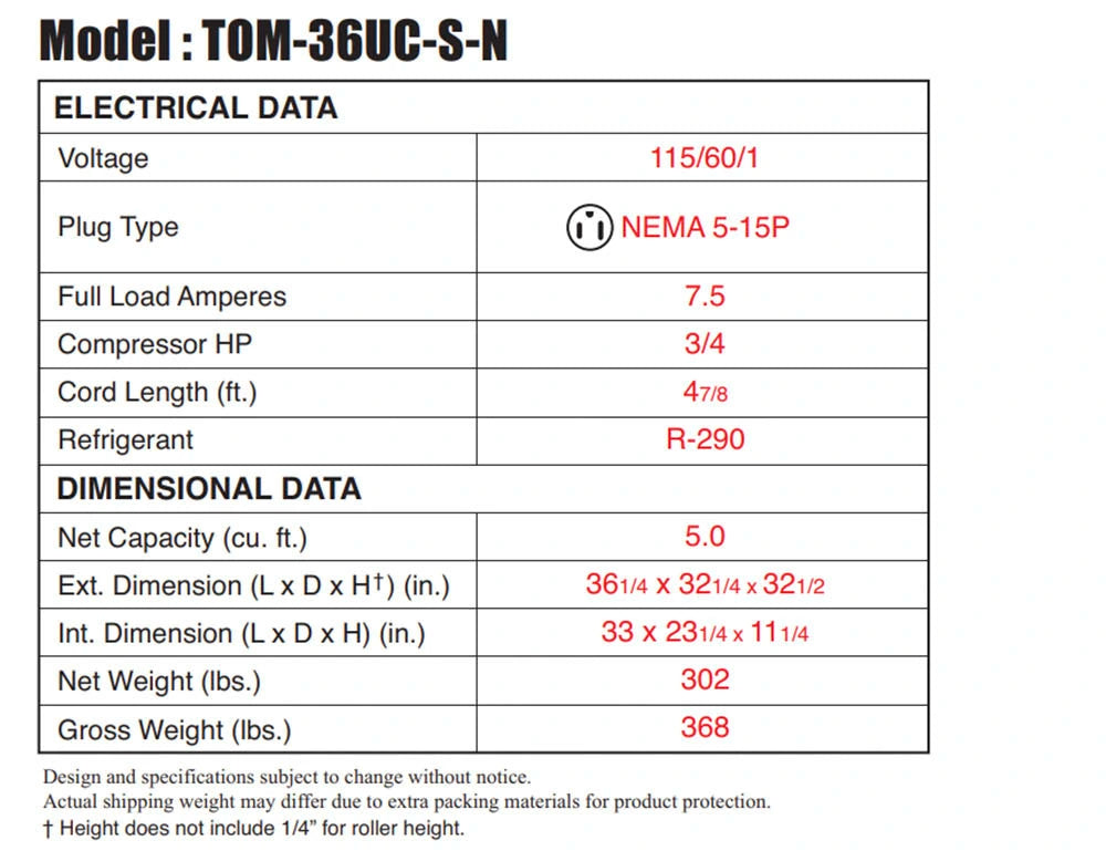 Drop-In Horizontal Open Display Case, low profile, 5.0 cu. ft. capacity, 36-1/4"W x 32-1/4"D x 32-1/2"H, self-cleaning condenser device, tempered glass front shield, LED interior lighting, solar powered digital thermometer, digital electronic thermostat with defrost control, solid side panels, standard back-guard improves airflow, stainless steel exterior, stainless steel interior including back wall & deck pans, perforated interior back wall & open top, stainless steel exterior, night curtain, R290 Hydrocarbon refrigerant, 3/4 HP, 115v/60/1-ph, 7.5 amps, NEMA 5-15P, cETLus, ETL-Sanitation (Contact sales for lead time) Warranty 2 Year Parts & Labor Additional 3 Year CompressorΒ