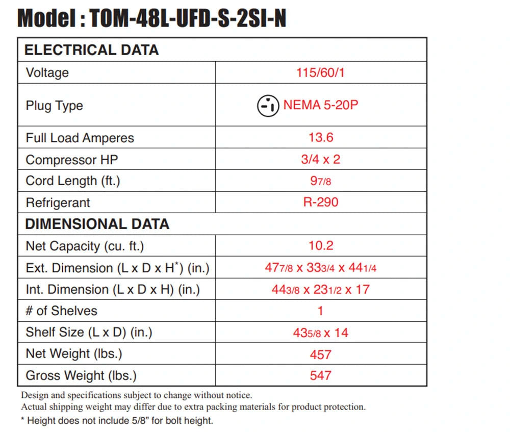 Drop-In Horizontal Open Display Case, low profile, 10.2 cu. ft. capacity, 47-7/8"W x 33-3/4"D x 44-7/8"H, self-contained refrigeration with self-cleaning condenser, (1) glass shelf + deck, tempered glass front shield & side walls, rear sliding glass doors, solar digital thermometer, digital electronic thermostat with defrost control, LED interior lighting, stainless steel interior & exterior, front air intake & rear air discharge, includes night cover, R290 Hydrocarbon refrigerant, (2) 3/4 HP, 115v/60/1-ph, 13.6 amp, cord with NEMA 5-20P, cETLus, ETL-Sanitation (Contact sales for lead time) Warranty 2 Year Parts & Labor Additional 3 Year CompressorΒ