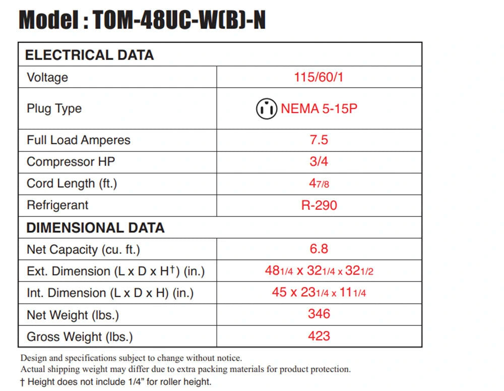 Turbo Air TOM-48UC-W(B)-N 48-1/4" Drop-In Horizontal Open Display Case, 6.8 cu. Ft., 115/60/1