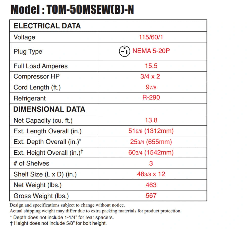 Turbo Air TOM-50MSEW(B)-N 51-5/8" Vertical Air Curtain Open Display Merchandiser, 13.8 cu. Ft., 115/60/1