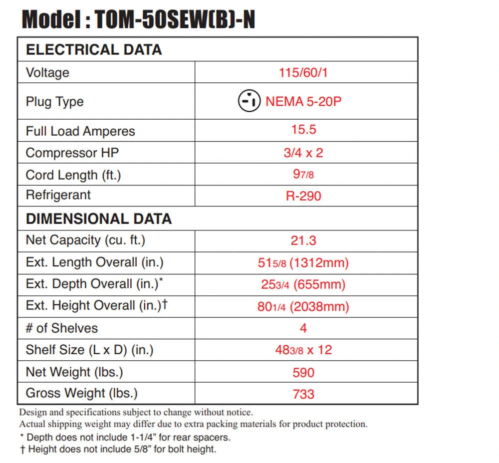 Turbo Air TOM-50SEW(B)-N 51-5/8" Vertical Air Curtain Open Display Merchandiser, 21.3 cu. Ft., 115/60/1