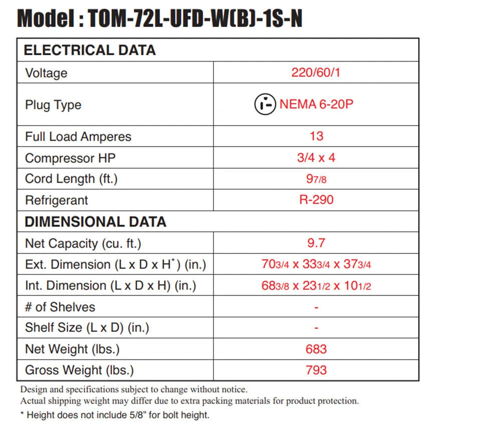 Drop-In Horizontal Open Display Case, low profile, 23.4 cu. ft. capacity, 71-7/8"W x 33-3/4"D x 52-1/2"H, self-contained refrigeration with self-cleaning condenser, (2) tiers with (4) glass shelves + deck, tempered glass front shield & side walls, rear sliding glass doors, solar digital thermometer, digital electronic thermostat with defrost control, LED interior lighting, stainless steel interior, specify exterior color, front air intake & rear air discharge, includes night cover, R290 Hydrocarbon refrigerant, (4) 3/4 HP, 220v/60/1ph, 13.0 amps, cord with NEMA 6-20P, cETLus, ETL-Sanitation (Contact sales for lead time) Warranty 2 Year Parts & Labor Additional 3 Year CompressorΒ