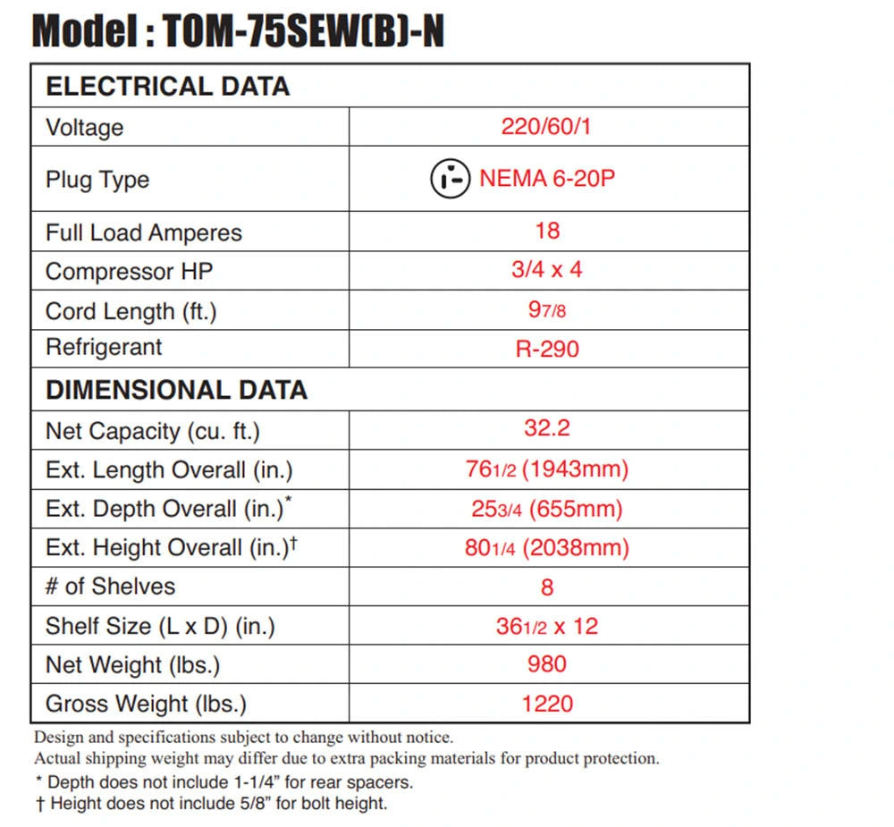 Turbo Air TOM-75SEW(B)-N 76-1/2" Vertical Air Curtain Open Display Merchandiser, 32.2 cu. Ft., 220/60/1