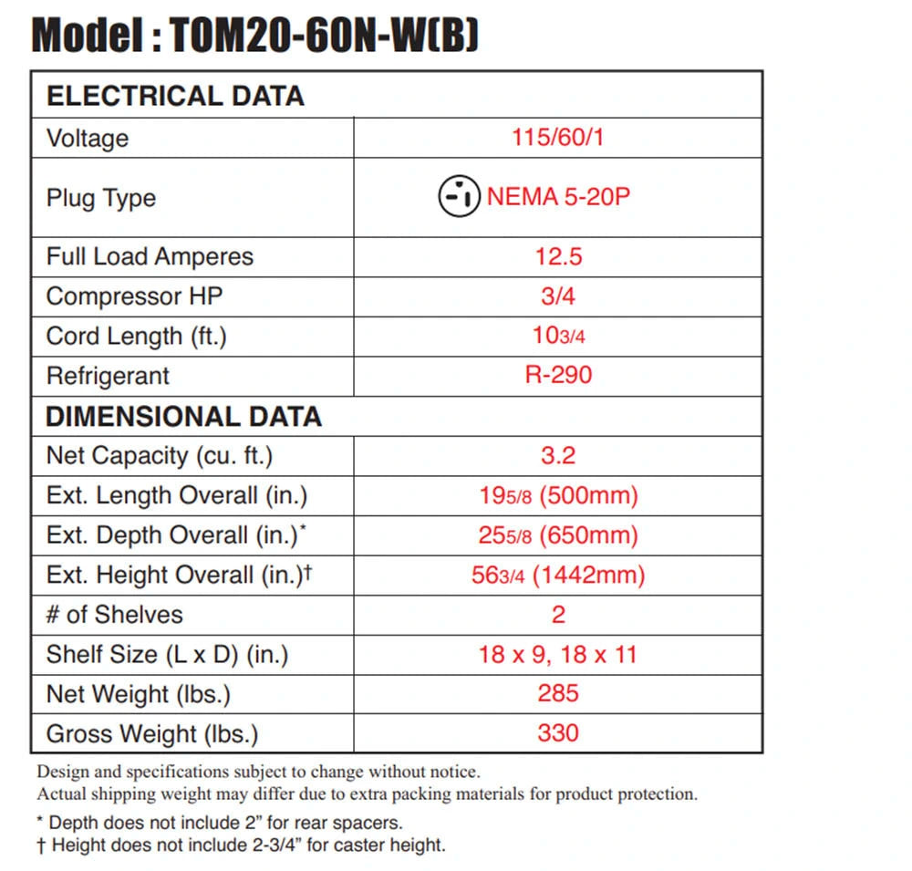 Horizontal Open Display Merchandiser, slim-profile, 3.2 cu. ft. capacity, 19-5/8"W x 25-5/8"D x 56-3/4"H, self-contained refrigeration with self-cleaning condenser, tempered glass front shield & side panels, (2) adjustable tempered glass shelves + deck, digital temperature controller with defrost control, LED interior lighting, stainless steel interior, front air intake & rear air discharge, 2-1/2? swivel casters (2 locking), R290 Hydrocarbon refrigerant, 3/4 HP, 115v/60/1-ph, 12.5 amps, cord with NEMA 5-20P, cETLus, ETL-Sanitation (contact sales for lead time) Warranty 2 Year Parts & Labor Additional 3 Year CompressorΒ